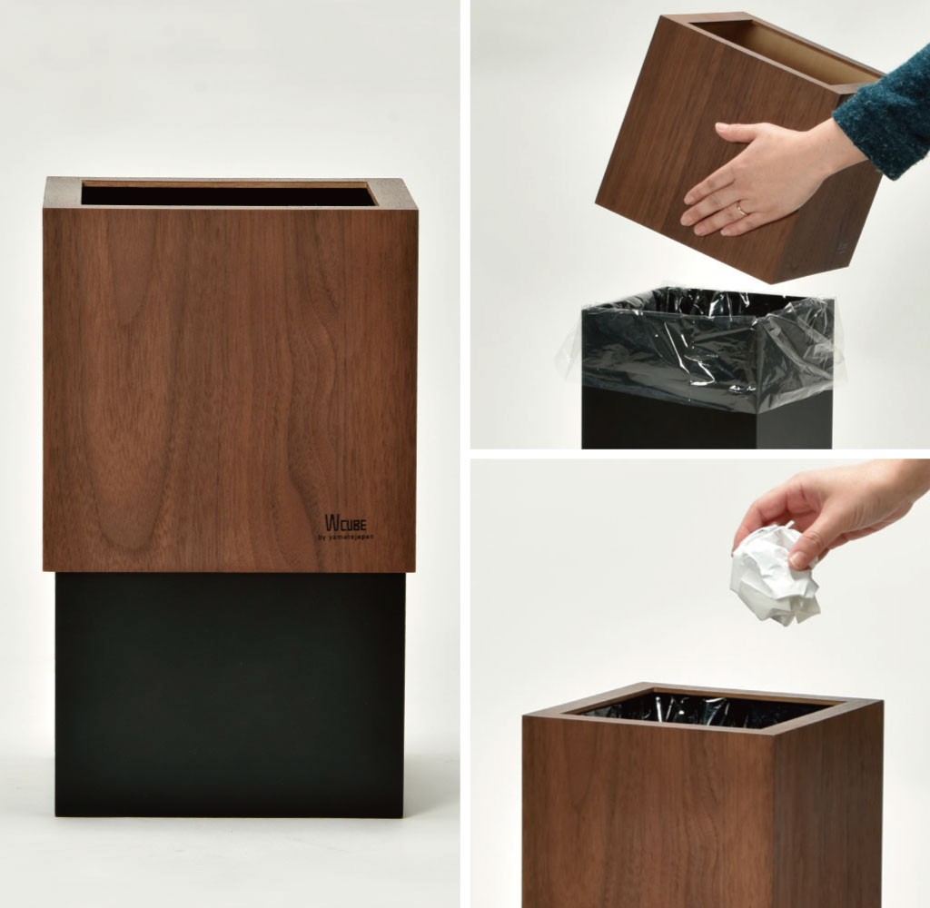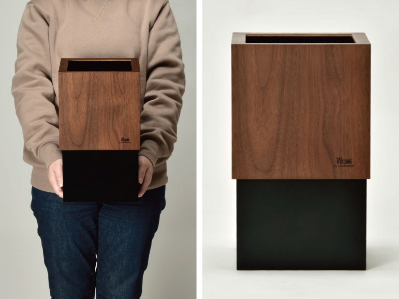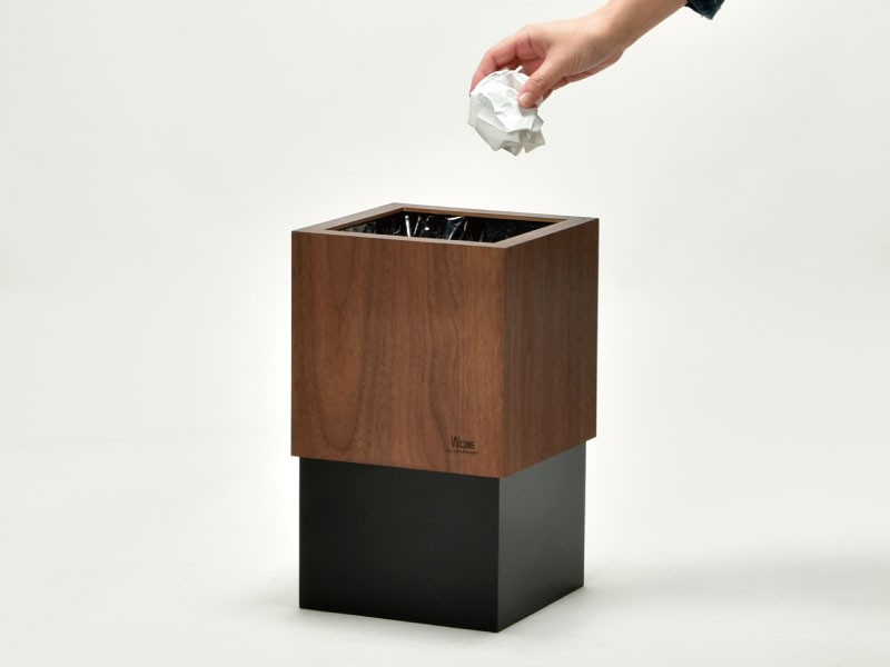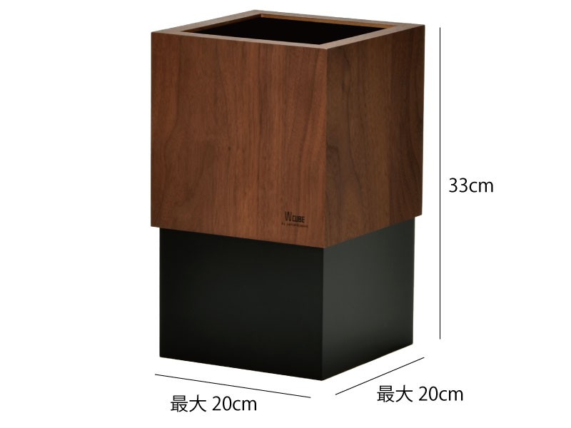 美しい木目と落ち着いたカラーの組み合わせがで高級感のある角型ダストボックス「W CUBE(ダブルキューブ) ウォールナット」です。カバーを被せれば簡単にゴミ袋を隠せるのがポイントで、生活感を出しません。カバーの表面はウォールナット材で仕上げてあり、木のぬくもりが感じられる優しい肌触りです。捨て口が広いのでゴミ捨てもサッと簡単にできます。また、四角いデザインは無駄なスペースを作らずコーナーにもすっきり収まります。職人がひとつひとつ丁寧に仕上げた、安心の日本製です。