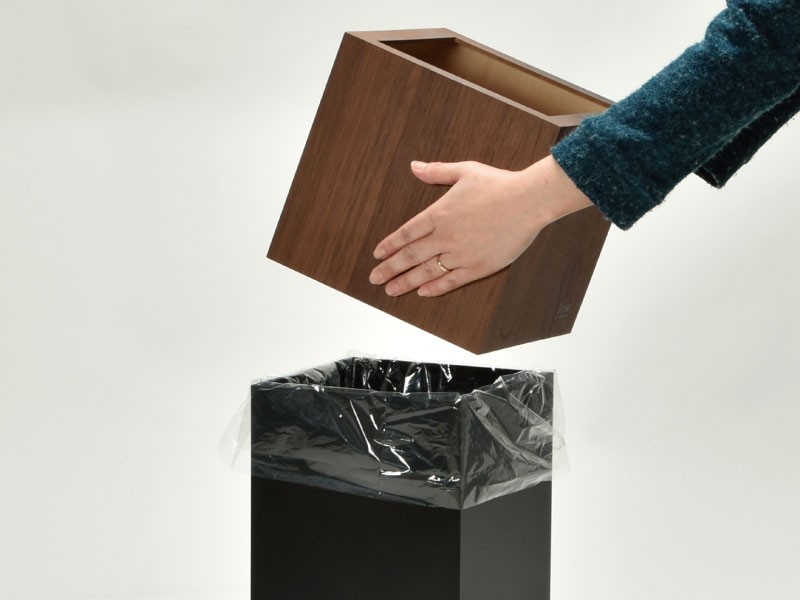 一見ゴミ箱には見えない、高級感のある美しいウォールナット材の木目と落ち着いたカラーの組み合わせがとてもおしゃれです。インテリアに合わせて選べるカラーは、色々なお部屋によく馴染みます。また、職人がひとつひとつ丁寧に仕上げており、木肌がとても滑らかで、木のぬくもりを感じられます。