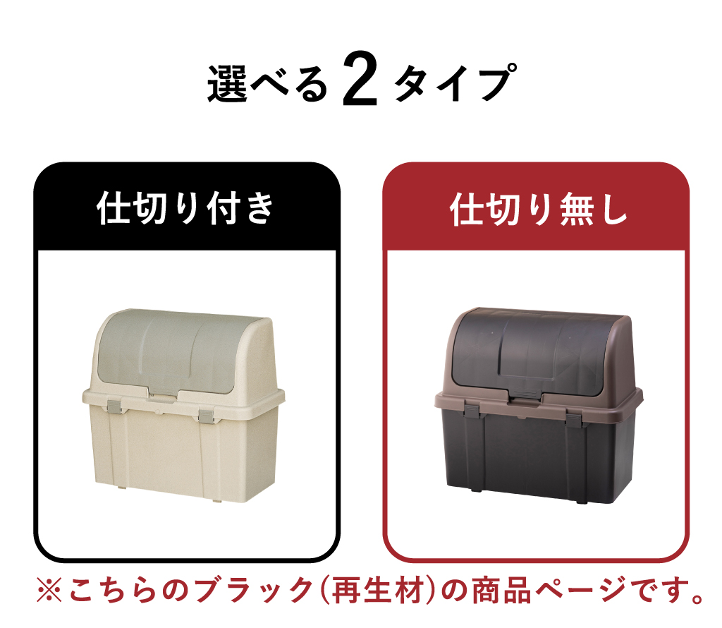屋外収納ボックスとしても活躍する万能な大容量ゴミ箱です。ゴミ箱はたっぷり入るのにスリムな設計で、屋外の様々な場所に設置できます。収集日までの扱いが困るゴミもまとめてゴミ箱に収納可能。とにかく大容量で45Lのゴミ袋を4つ収納することができる大型ゴミ箱です。大型ゴミ箱はインテリアや外観を損なわないシンプルなデザインです。また、大容量の屋外収納ボックスとして活躍する優れもの。屋外収納ボックスにはガーデニング用品やカー用品、大型のキャンプ用品など屋外で使う様々なものを収納できます。また、フタは片手で簡単に開閉できるのでゴミ捨てもスムーズに。ゴミ箱のフタは後ろ側に倒れすぎないので壁際にぴったり設置できます。ベージュは内部を2分別できる仕切り付きです。仕切る位置が調節できるので分別が楽々。本体裏側にはヒモを通せる穴が付いているので、柱に固定して設置することができます。風が強い日も安心です。