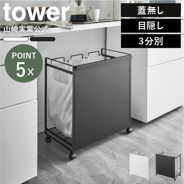 ゴミ箱 おしゃれ キッチン用 ゴミ袋ホルダー 分別 大型 大容量 スリム リビング用 ダストボックス ごみ箱 山崎実業 目隠し分別ダストワゴン タワー 3分別 tower