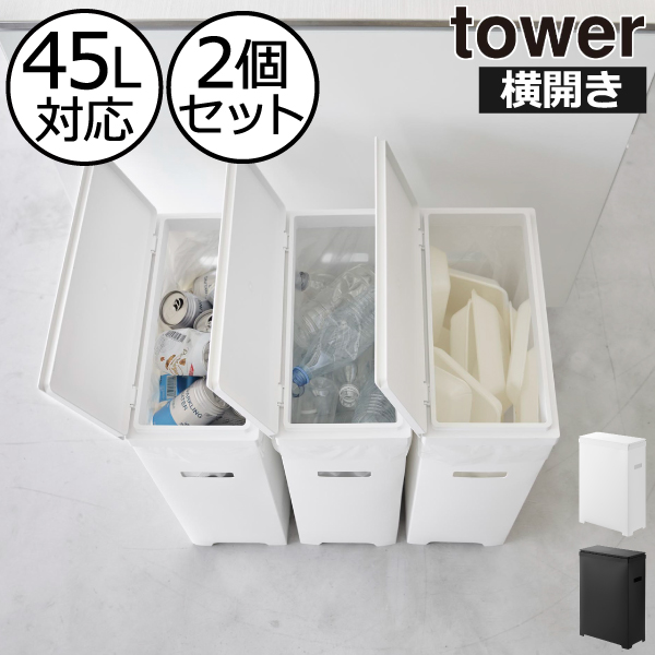 スリム蓋付きゴミ箱 tower 横開きタイプ 2個組