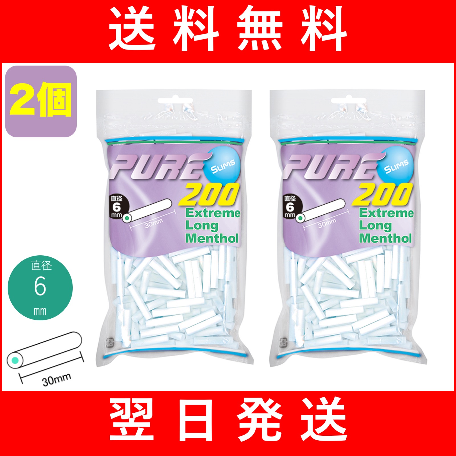 2個セット PURE 手巻きタバコ用 シャグ用 スリム エクストリーム ロング メンソール フィルター 6mm×30mm 200個入り 手巻きたばこ用フィルター