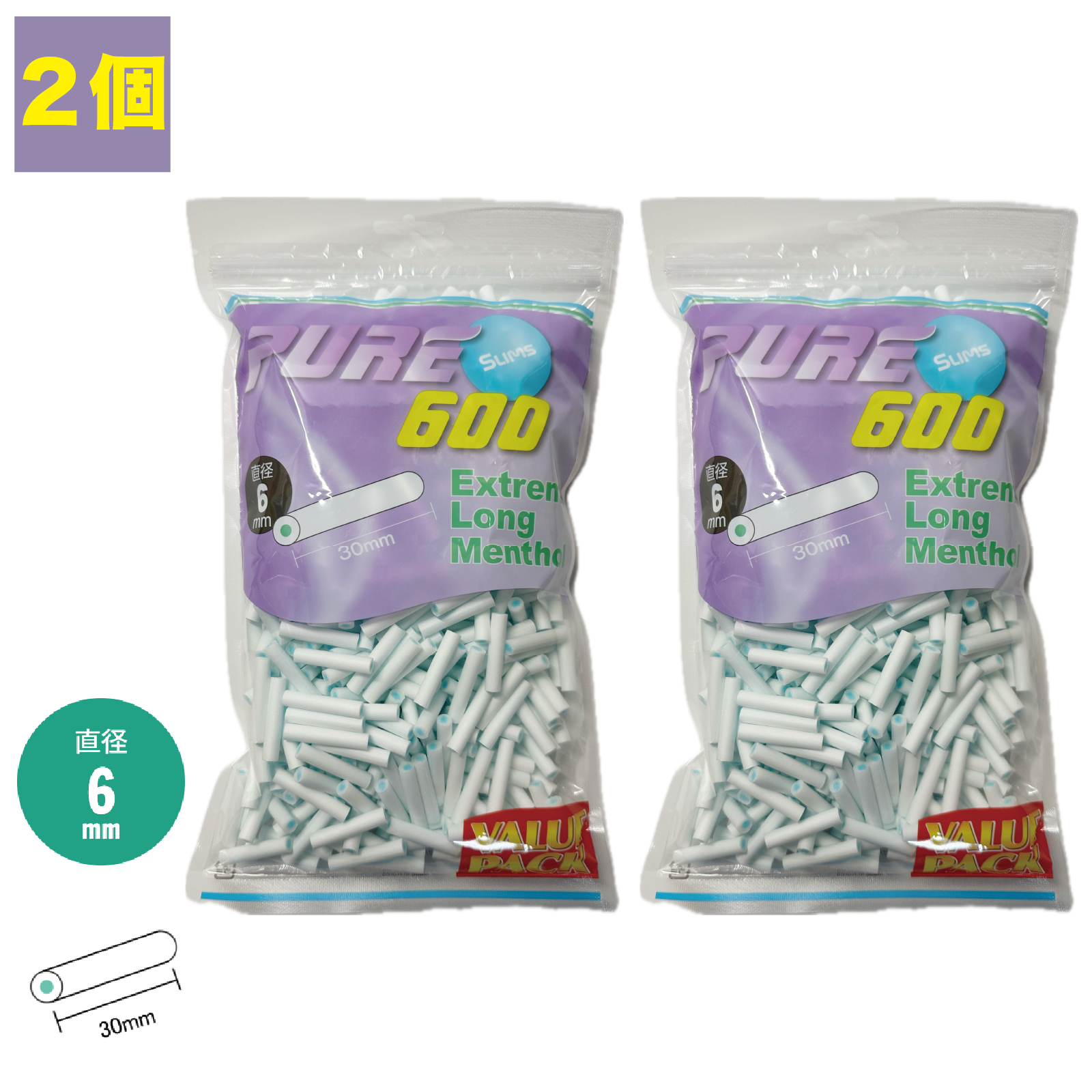 2個セット PURE 手巻きタバコ用 シャグ用 スリム エクストリーム ロング メンソール フィルター 6mm×30mm 600個入り 手巻きたばこ用フィルター