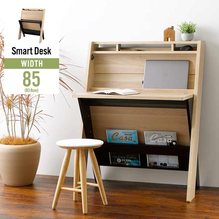 | デスク 収納デスク ライティングデスク 幅85cm リビング学習 リビング デスク おしゃれ 木目 北欧 ライティングビューロー パソコンデスク 書斎机 フラップ扉収納付き 棚付き ブックシェルフ ナチュラル モダン |