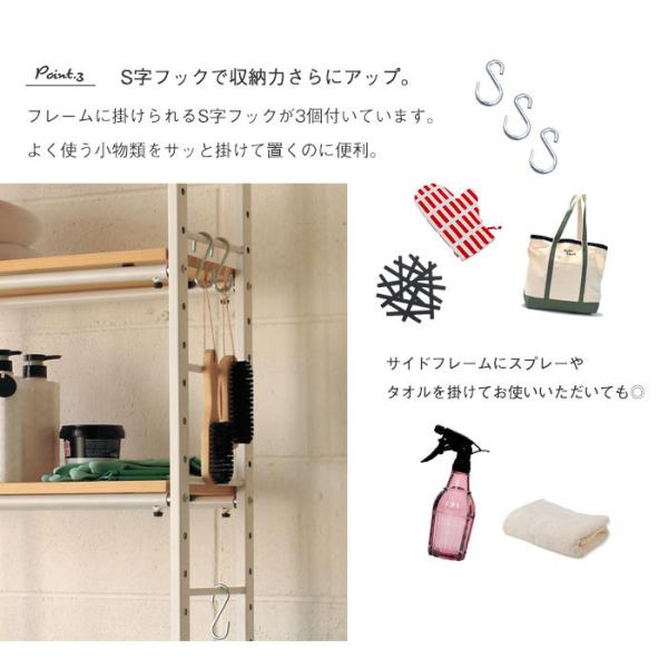 | キッチンやランドリーの収納に便利な横幅が伸縮できるスチールラック。 設置場所に合わせて横幅の変更が可能。 棚板は50mmピッチで高さが変えられるので、一人暮らし用のコンパクトな冷蔵庫や洗濯機もスッキリ収まります。 上部のバーはハンガー掛けとして使ったり、目隠し用のカーテンを取り付けるときに便利。 (※カーテンは付属しておりません) S字フックが3個付いているので、ちょっとしたものを掛けておくのに便利。 清潔感漂う北欧テイストなホワイトフレーム×ナチュラル。 | |