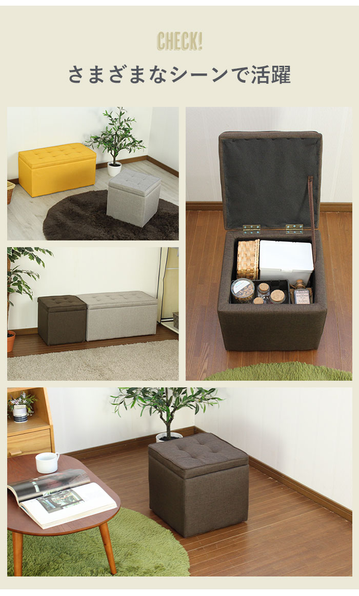 | 「座る」と「しまう」が一つになった収納スツールボックス。 座面の下は収納スペースになっているので、散らかる小物類や本、CD・DVDなどの収納に最適。 どんなお部屋にも馴染むシンプルなデザインなので、リビングだけでなく、玄関先やちょっとしたスペースに置いてもおしゃれな印象に。 色違いを交互に並べてみたり、同シリーズのダブルタイプと合わせてみたり、自分好みのアレンジでお部屋のアクセントになるインテリアとしても大活躍。 |