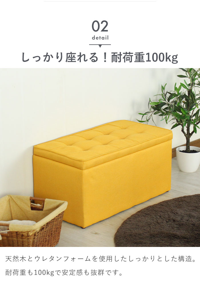 | 「座る」と「しまう」が一つになった収納ベンチ。 座面の下は収納スペースになっているので、散らかる小物類や本、CD・DVDなどの収納に最適。 どんなお部屋にも馴染むシンプルなデザインなので、リビングだけでなく、玄関先やちょっとしたスペースに置いてもおしゃれな印象に。 色違いを交互に並べてみたり、同シリーズのシングルタイプと合わせてみたり、自分好みのアレンジでお部屋のアクセントになるインテリアとしても大活躍。 |
