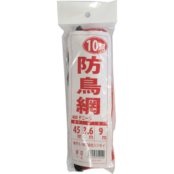 シンセイ 防鳥網(45mm目)10坪用 1.8×18m 400デニール オレンジ 果樹園 田畑