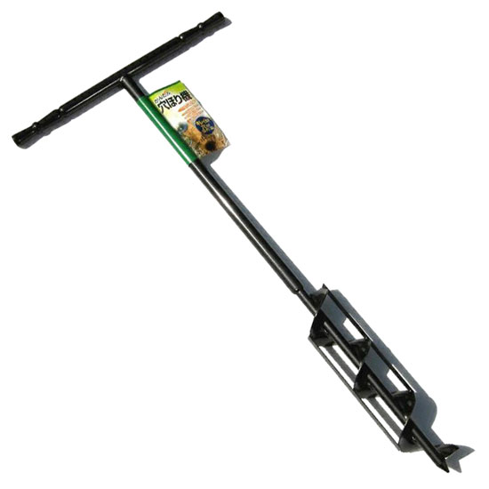 希望の深さに達するまでT型ハンドルを下に押し付けながら、右回りに回し穴を掘り進めます。