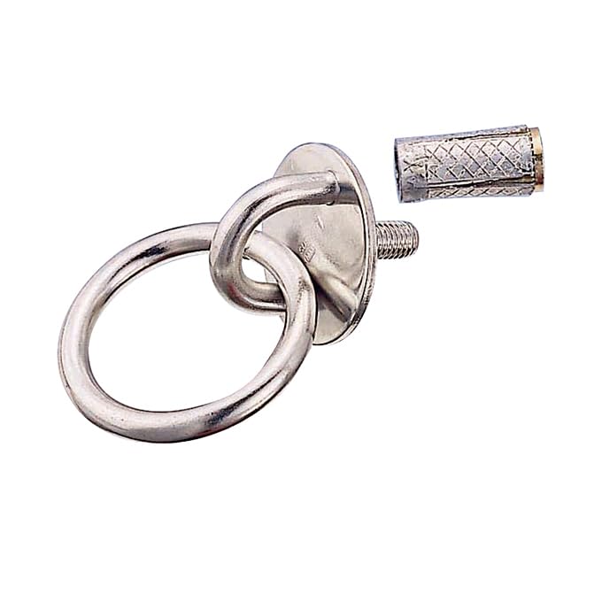 ●アンカープラグが付いています。●丸カンが付いているので、太いロープ等を通すのが容易です。●座部分が円形です。●壁面・床面・柱等に設置し、チェーンなどの端末金具として。