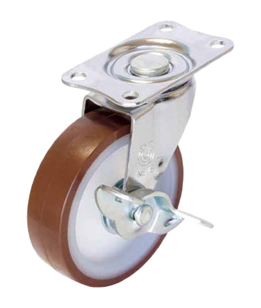 ユーエイキャスター:Eシリーズ E-S型 自在キャスター ストッパー付 ウレタン(ナイロンホイル)車 車輪径φ100 メーカー型式:E-100URS