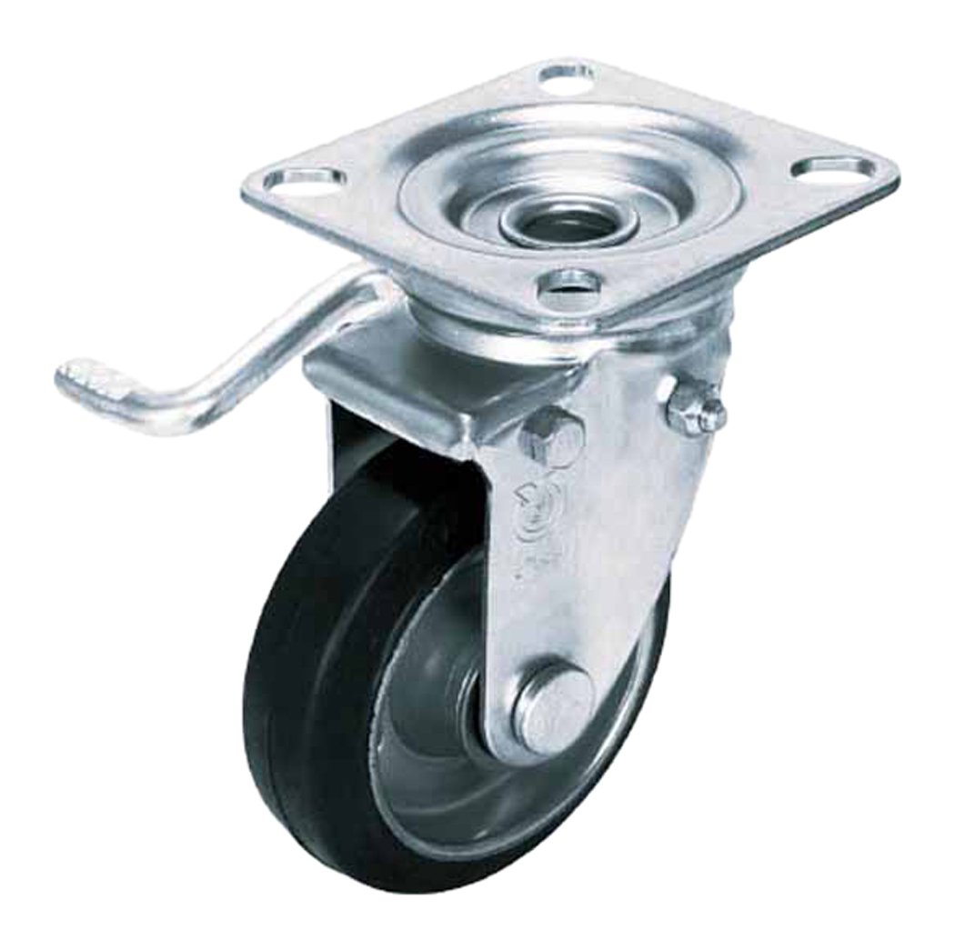 ユーエイキャスター:Jシリーズ JB型 自在キャスター ダブルストッパー付(左) ゴム(鋼板ホイル,B入)車 車輪径φ100 メーカー型式:WJB-1