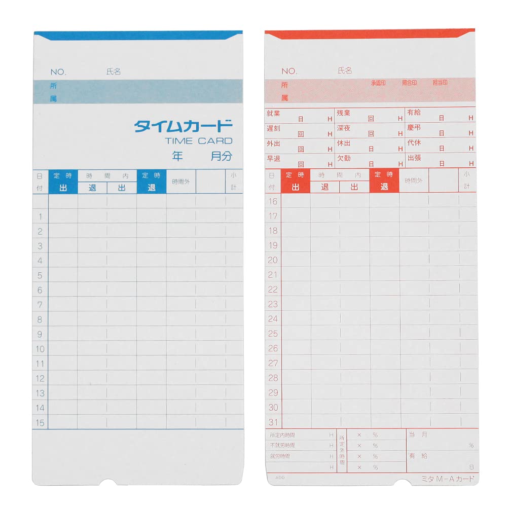 mita タイムカード Aカード対応 汎用品 (月末/15日締) 100枚 アマノ用 汎用 M-A