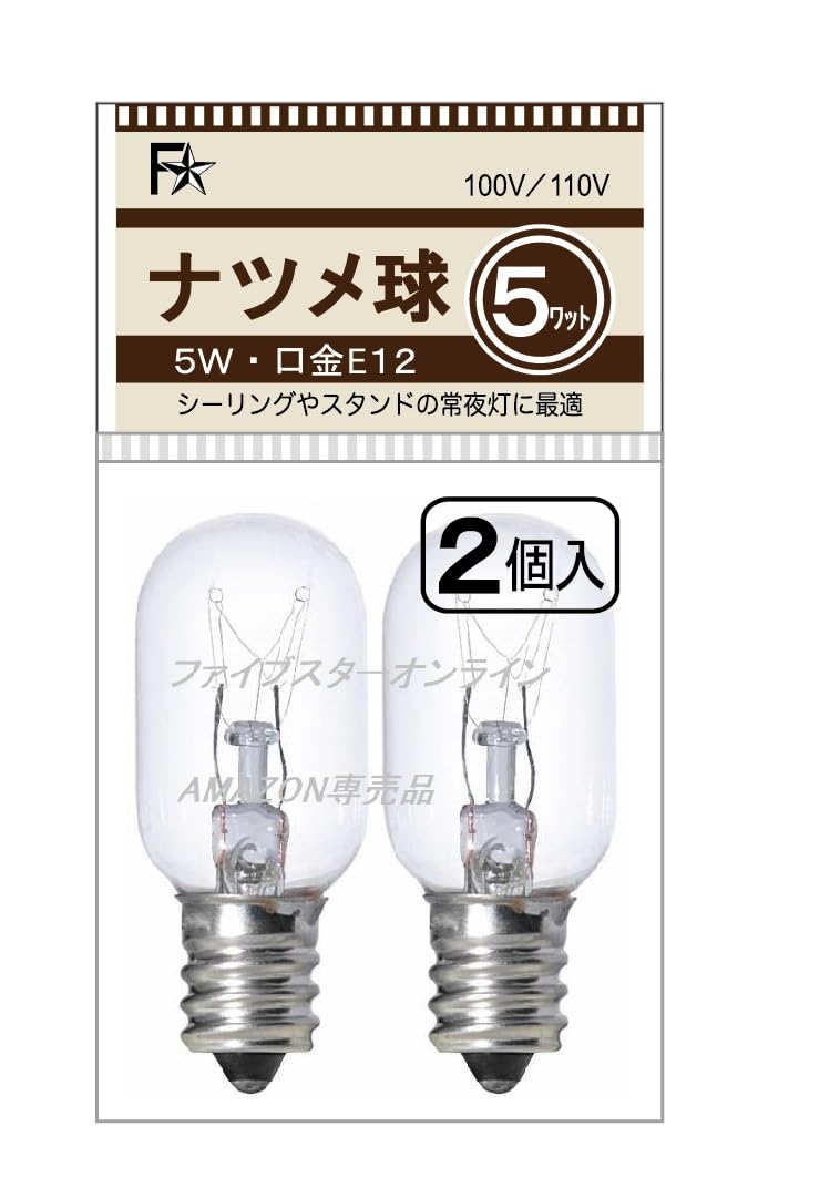 ◆光源色:電球色(暖色系のオレンジっぽい光) ◆口金:E12 ◆定格電圧:100V ◆定格消費電力:5W ◆入数:2