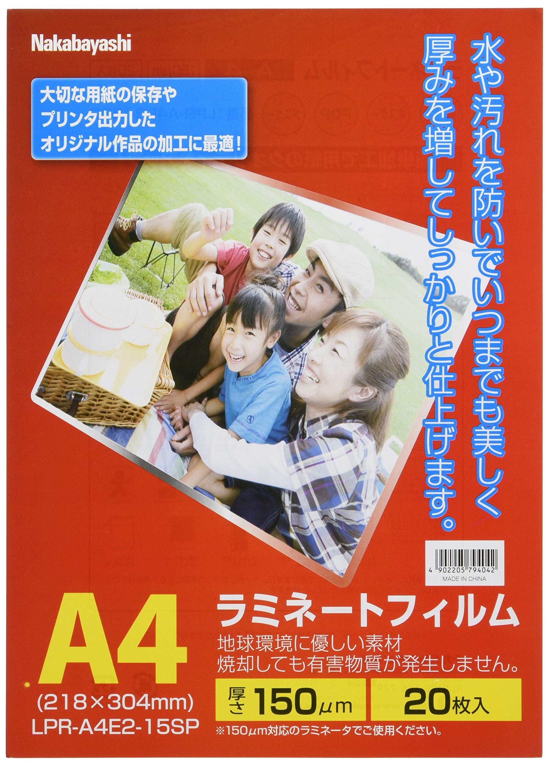 商品名:ナカバヤシ ラミネートフィルム E2タイプ 150ミクロン A4サイズ LPR-A4E2-15SP 20枚入