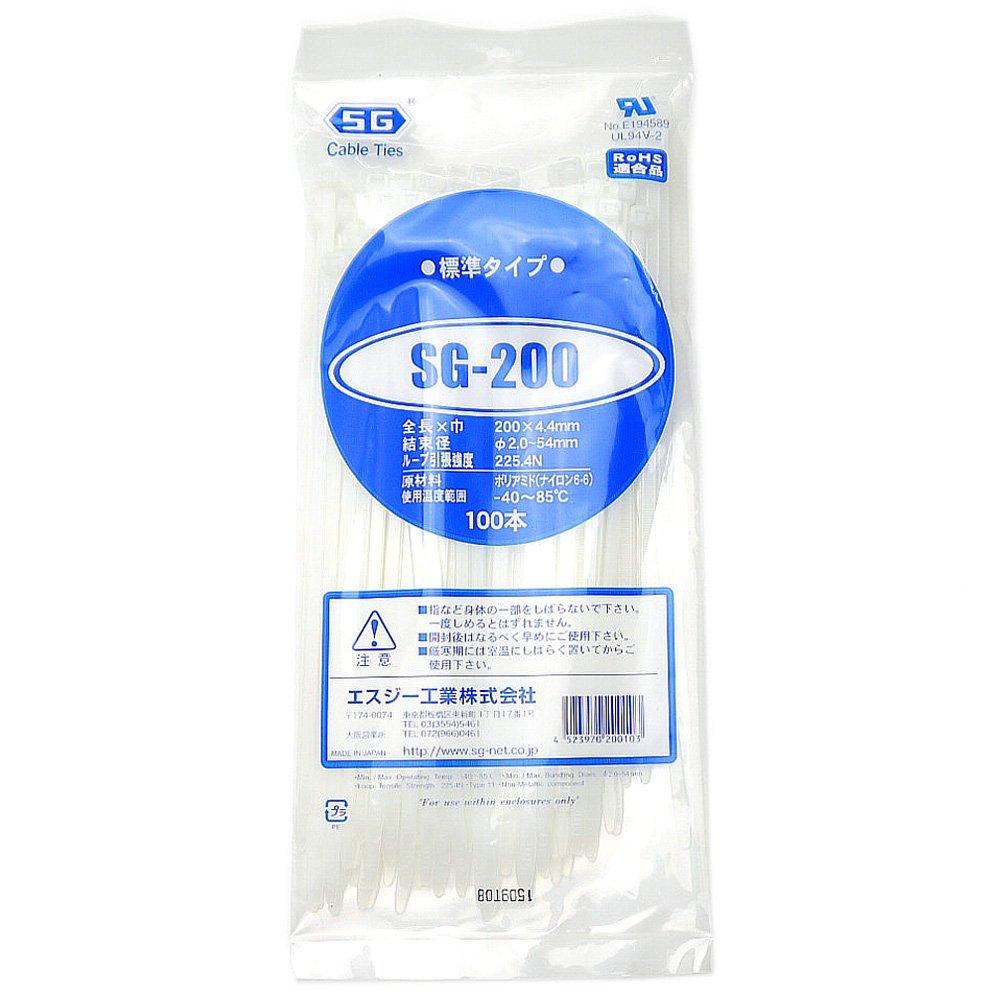商品名:エスジー工業(SG Industrial) 結束バンド 丈夫な国内製プロ仕様 SGタイ (長さ200mm SG-200)