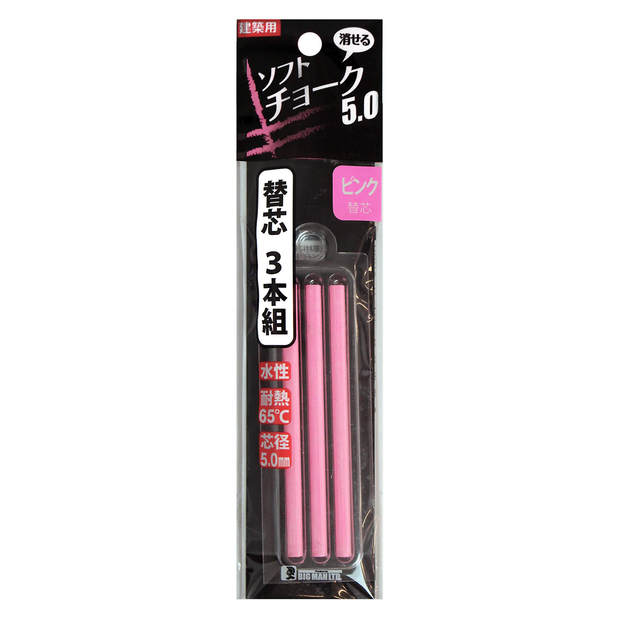 ビッグマン(Bigman) 消せる 水性ソフトチョーク 5mm 替芯ピンク3本入 BEC-P3