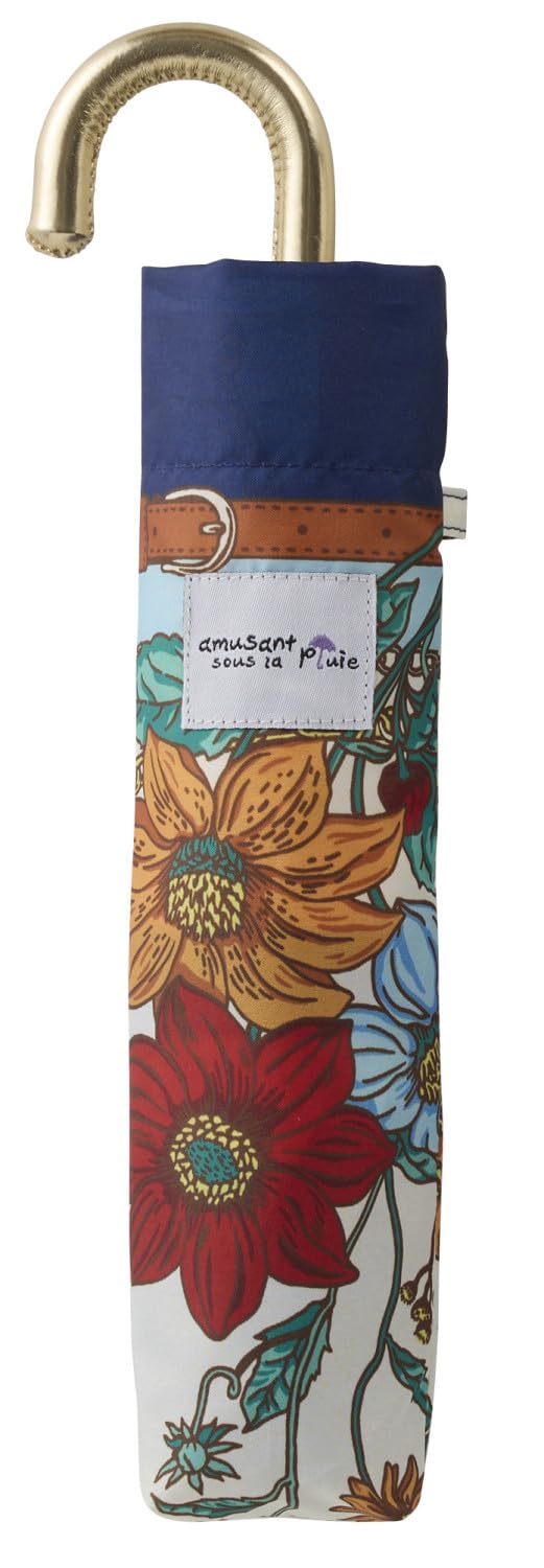 宮嶋 折畳傘 55cm 耐風骨 UV ボタニカルスカーフ ネイビー 【12810】