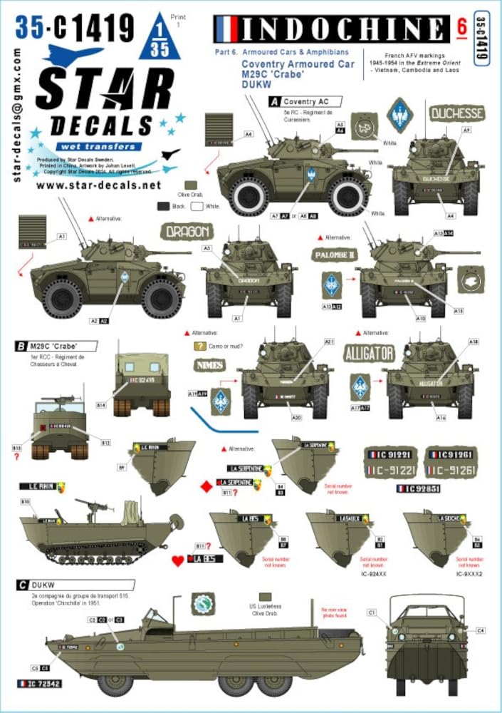 商品名:スターデカール 1/35 現用 フランス インドシナ戦争#6 装甲車・水陸両用車 コベントリー装甲車/M29Cクラブ/ウィーゼル/DUKW プラモデル用デカール SD35-C1419