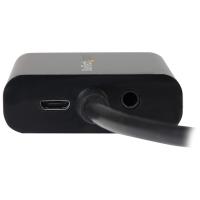 "DisplayPort - VGA変換アダプタ。本製品には、オーディオポートが搭載されており、DisplayPort搭載デバイス(HP EliteBook Folio 9470mなど)をVGAディスプレイやプロジェクタにオーディオ付きで接続します。
