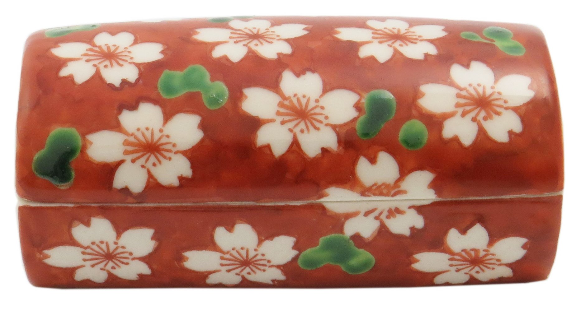 京焼 清水焼 手描き 琴型 楊枝入 赤桜 TG-002A