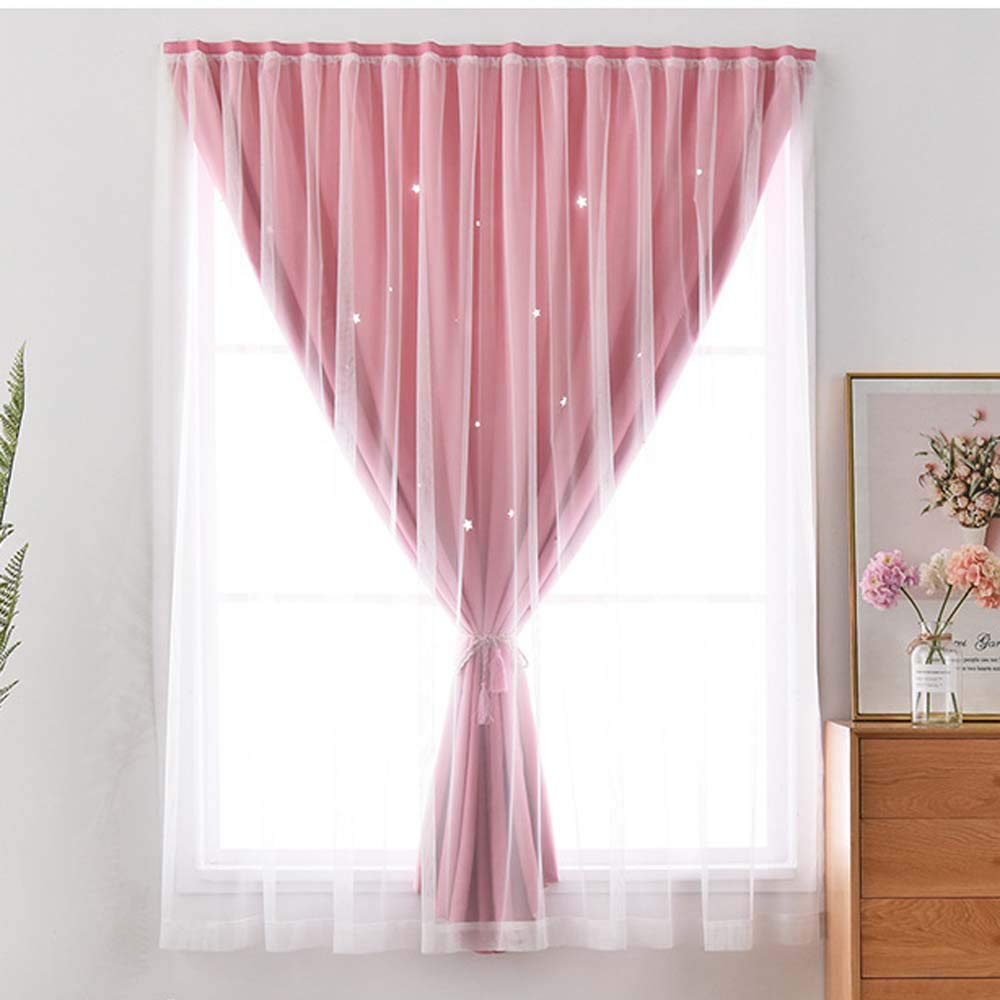 商品名:Senyumei カーテン二重 姫系遮光カーテン 透かし彫り星柄 おしゃれ かわいい マジックテープ掛け シェードカーテン (1枚幅100cm丈120cm ピンク)