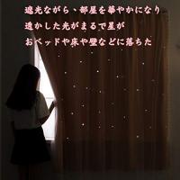 【おしゃれ】姫系遮光カーテン、レーザー切断技術より彫り出す星柄から透かし光がおベッドや床や壁などに落ちて、室内はまるで夜空に輝く星たちが煌めいてくれます。ベッドに寝る時ぐらい好きな星空を感じでき。