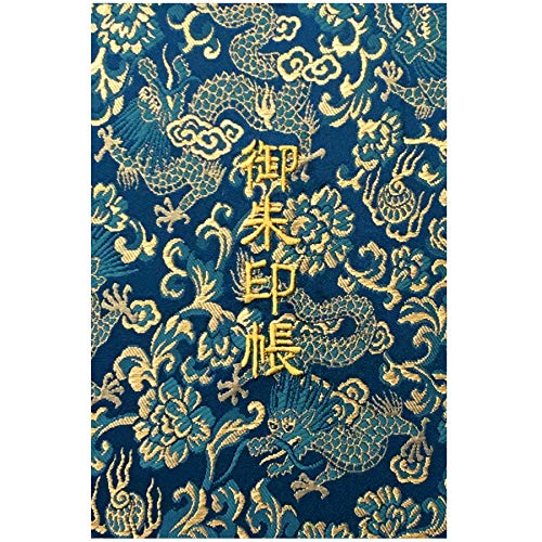 千糸繍院 御朱印帳L【翡翠龍】西陣織 金襴装丁/刺繍文字 蛇腹式48ページ 大判 (金色刺繍文字/生成り本文)