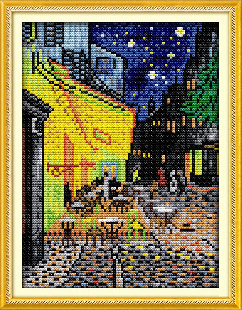 Amiiba クロスステッチ刺繍キット図案印刷済み 11ct 夜のカフェテラス プリント済み DIY ウォールアート 装飾 初心者 図柄印刷