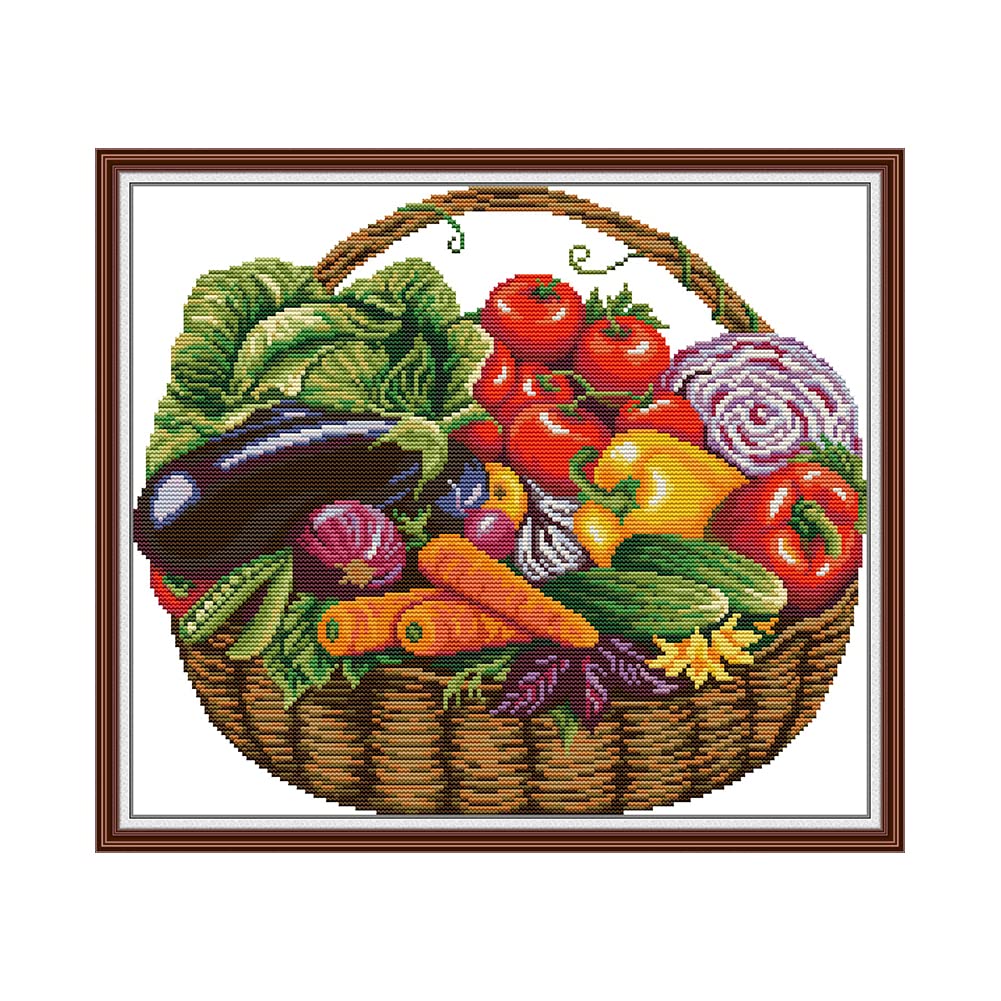 Amiiba クロスステッチ刺繍キット図案印刷済み 11ct 野菜フラワーバスケット プリント済み DIY ウォールアート 装飾 初心者 図柄印刷
