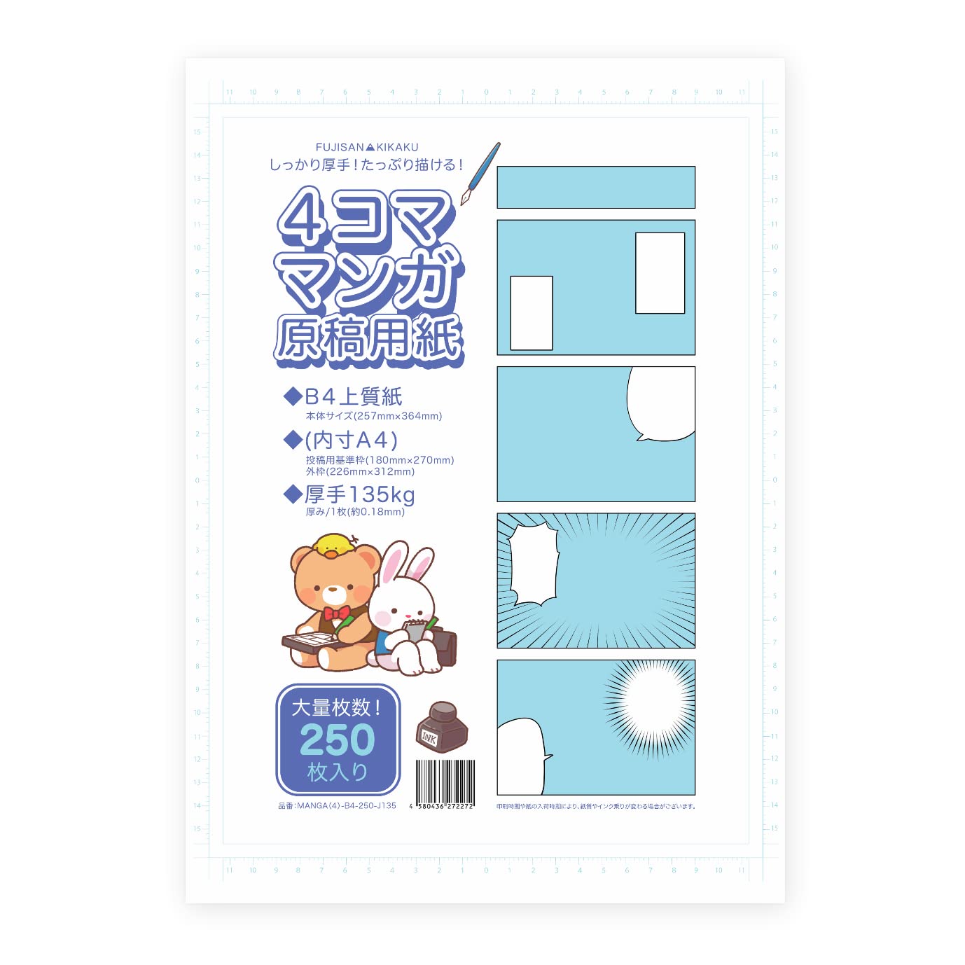 ふじさん企画 漫画用紙 4コマ B4 枠あり 日本製 厚紙 上質紙 135kg 紙厚0.18mm 250枚 MANGA(4)-B4-250-J135