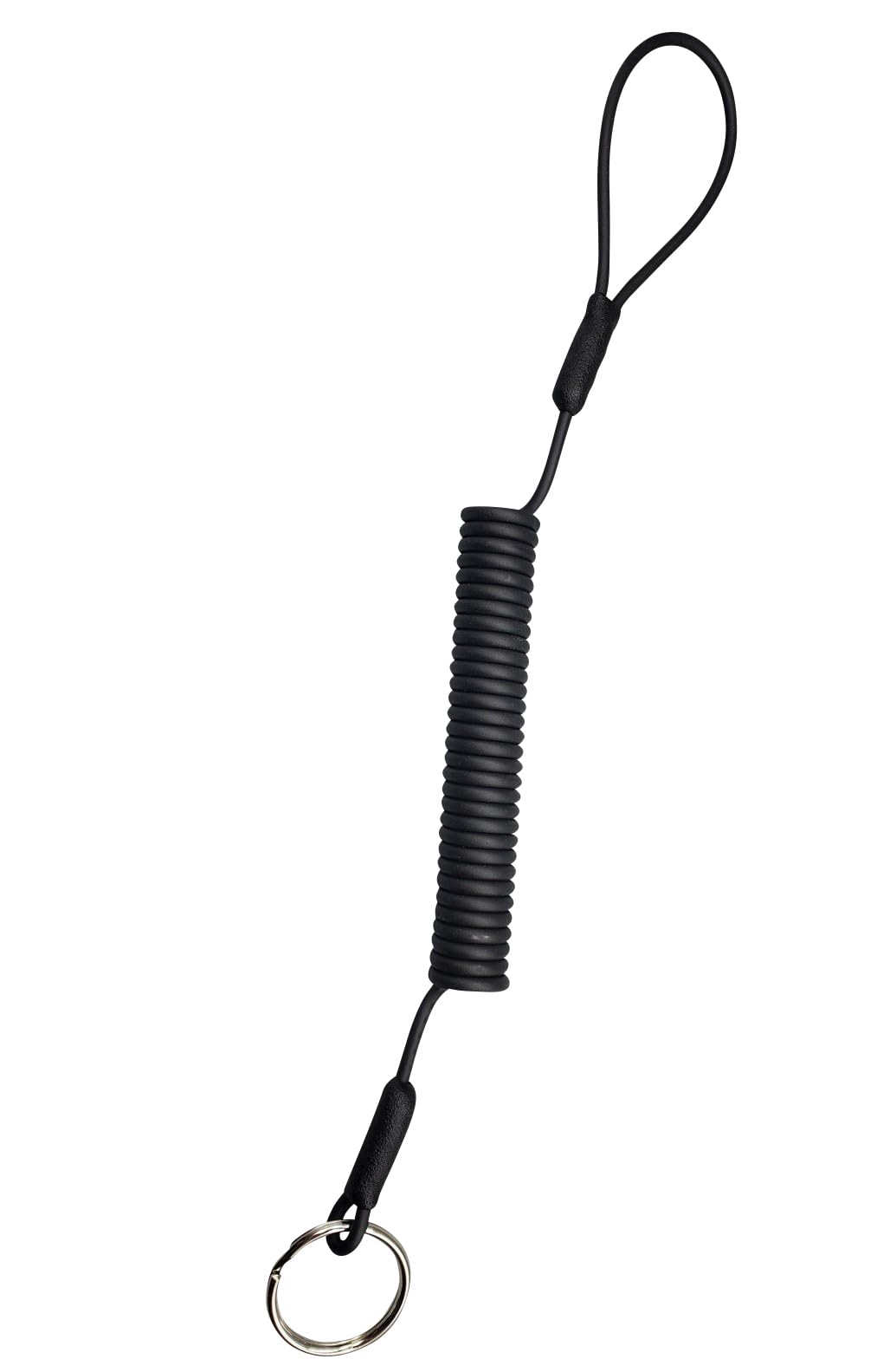 鍵紐コイルは先端にリング、一方がループになったシンプルな伸びるストラップです。ループ部分をベルトに通して使用してください。鍵の落下防止・紛失防止に最適な伸びるストラップです。コイル部分にはステンレスワイヤーが入っているので丈夫で安心です。また、ナスカンを使用していないので重くない便利なストラップです。