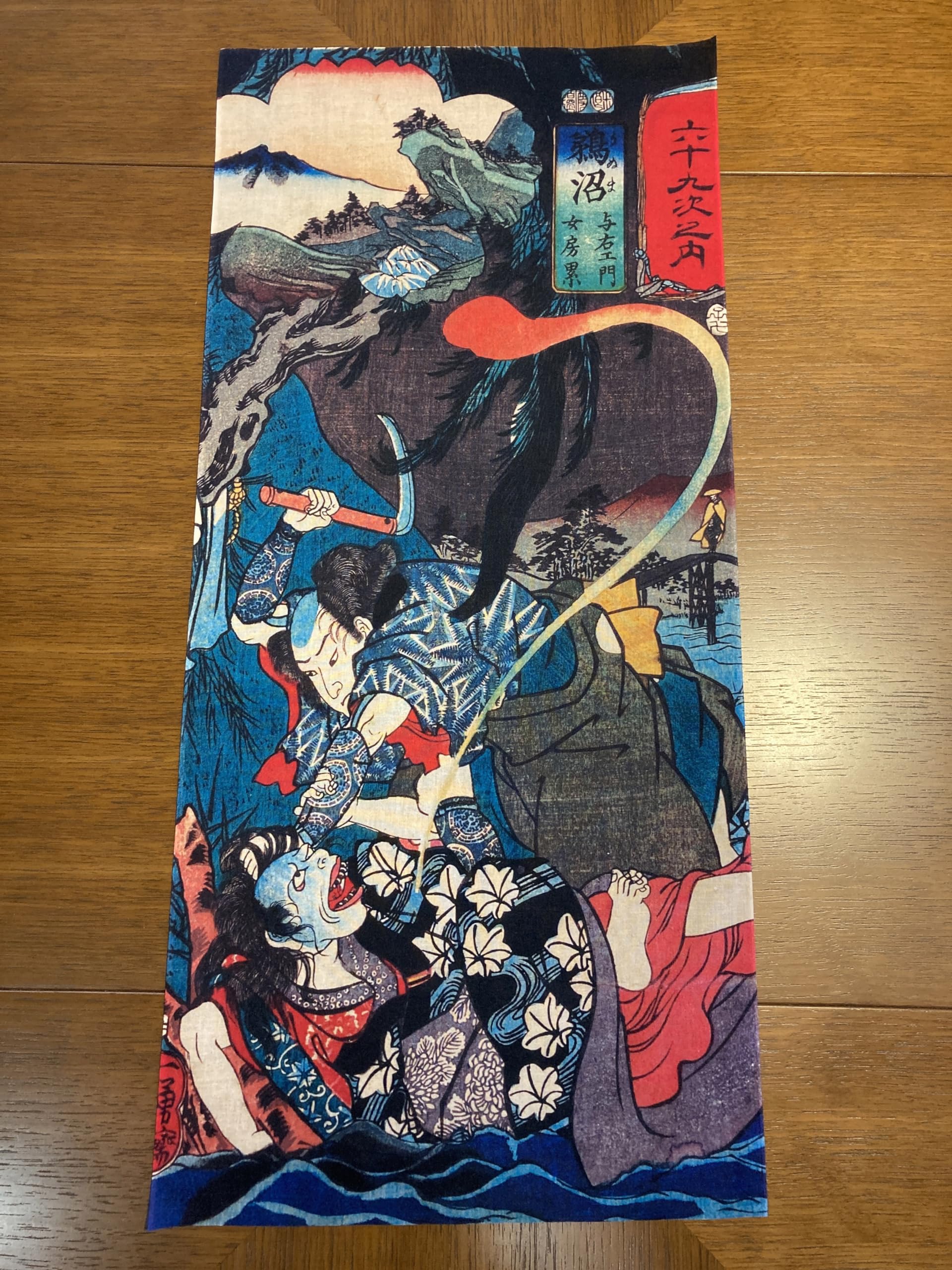 古今東西 浮世絵 手ぬく?い 鵜沼 木曽街道六十九次之内 歌川国芳