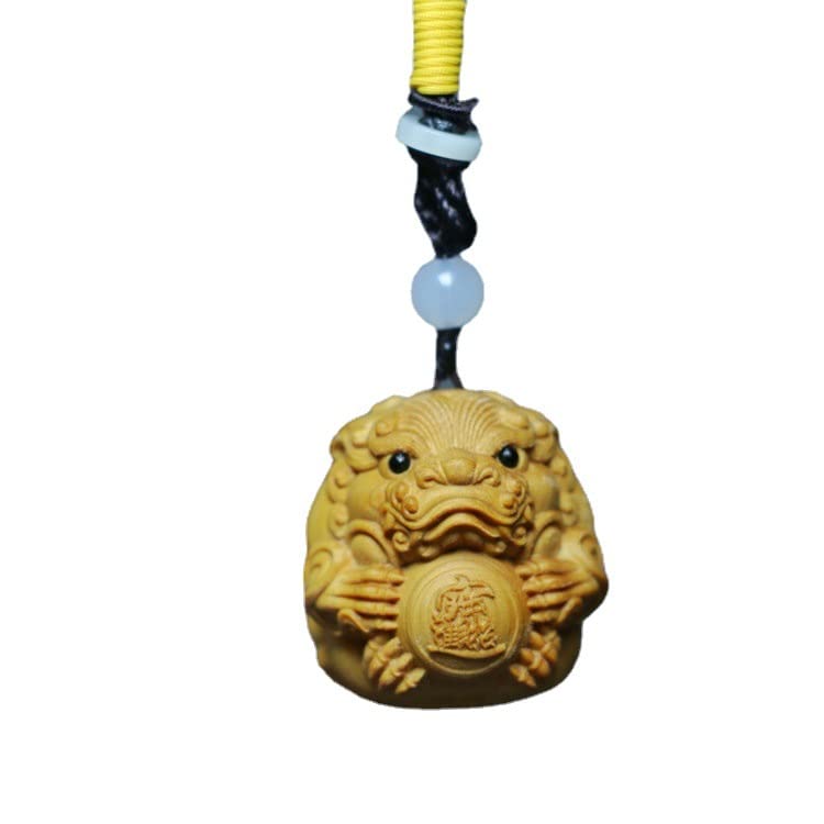 [Lhyxuuk] 木彫り ミニ 貔貅 ヒキュウ木製 厄除け 縁起物 根付 ストラップ 招福 招財 供養 金運 運気上昇 お守り (A-黄?木貔貅)