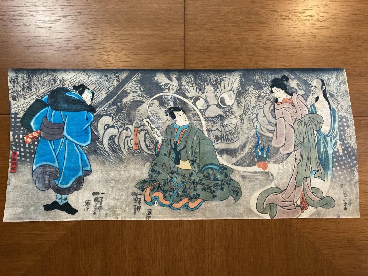 古今東西 浮世絵 手ぬく?い 歌川国芳 昔ばなしの戯猫又年をへて古寺に怪をなす図
