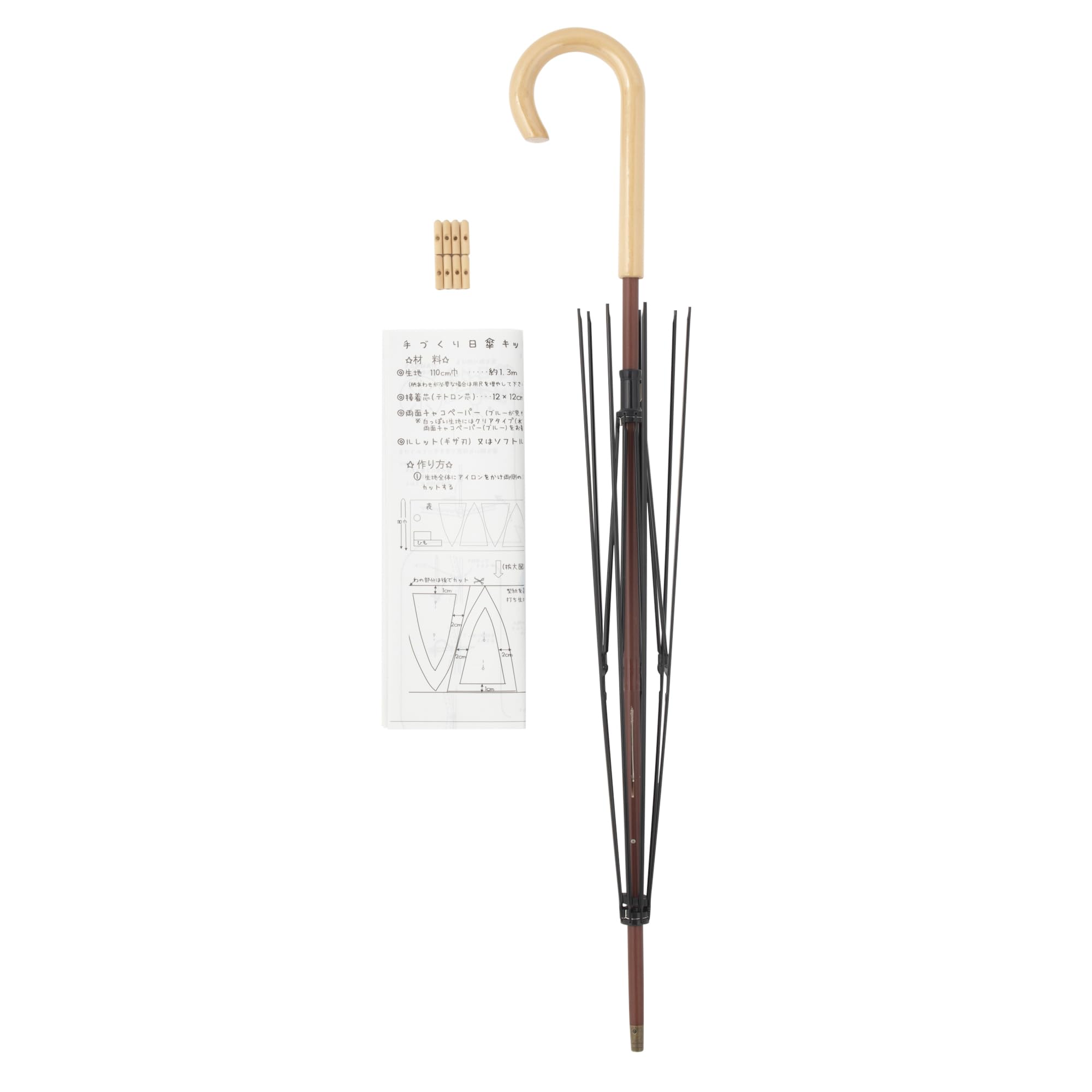 商品名:手づくり日傘キット(けやき棒タイプ)黒骨・白木持手 FUK-1250