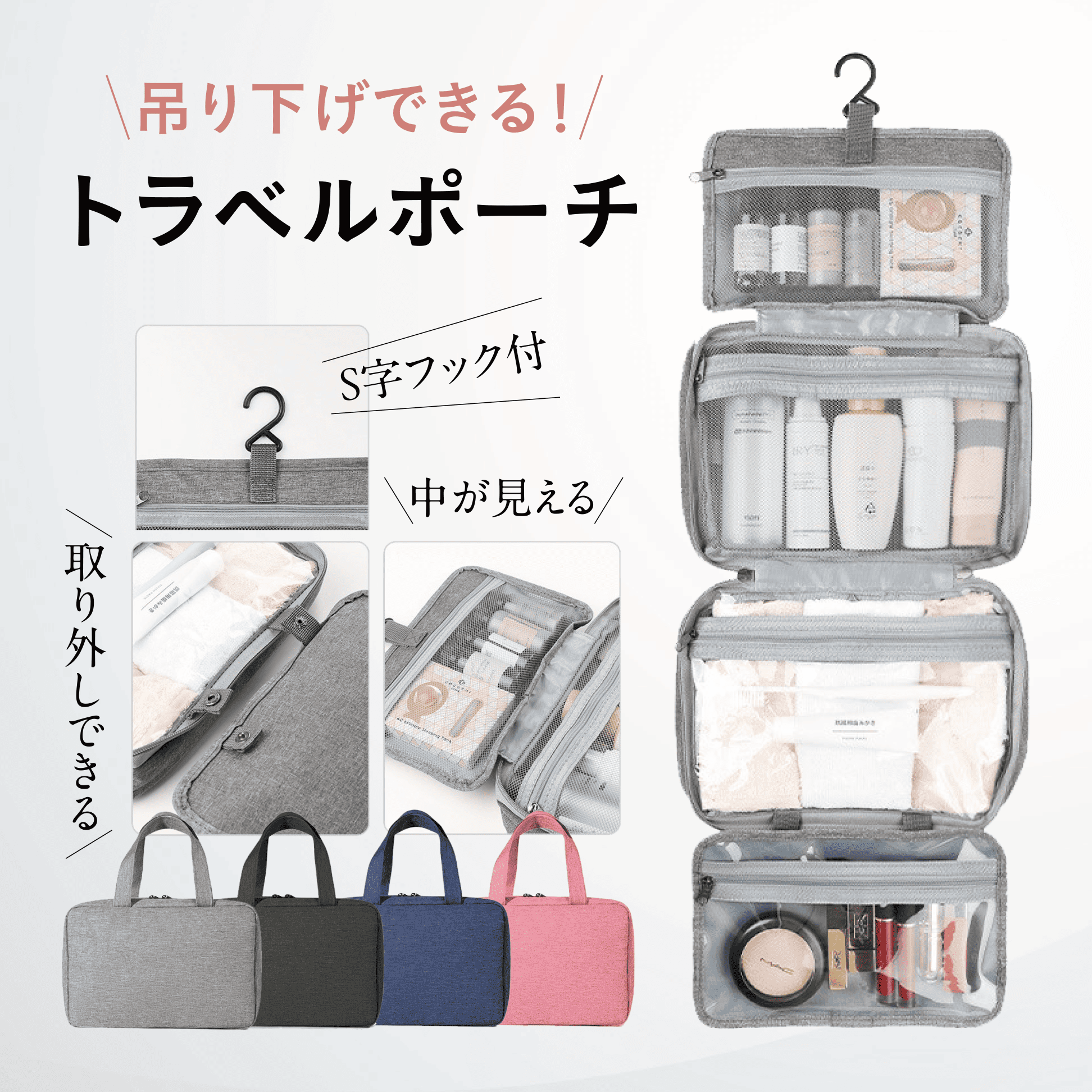 トラベルポーチ 吊り下げ 壁掛け 化粧ポーチ アメニティ 旅行用 洗面用具 大容量 防水 フック付き 旅行 トラベル おしゃれ コンパクト メイク 軽量