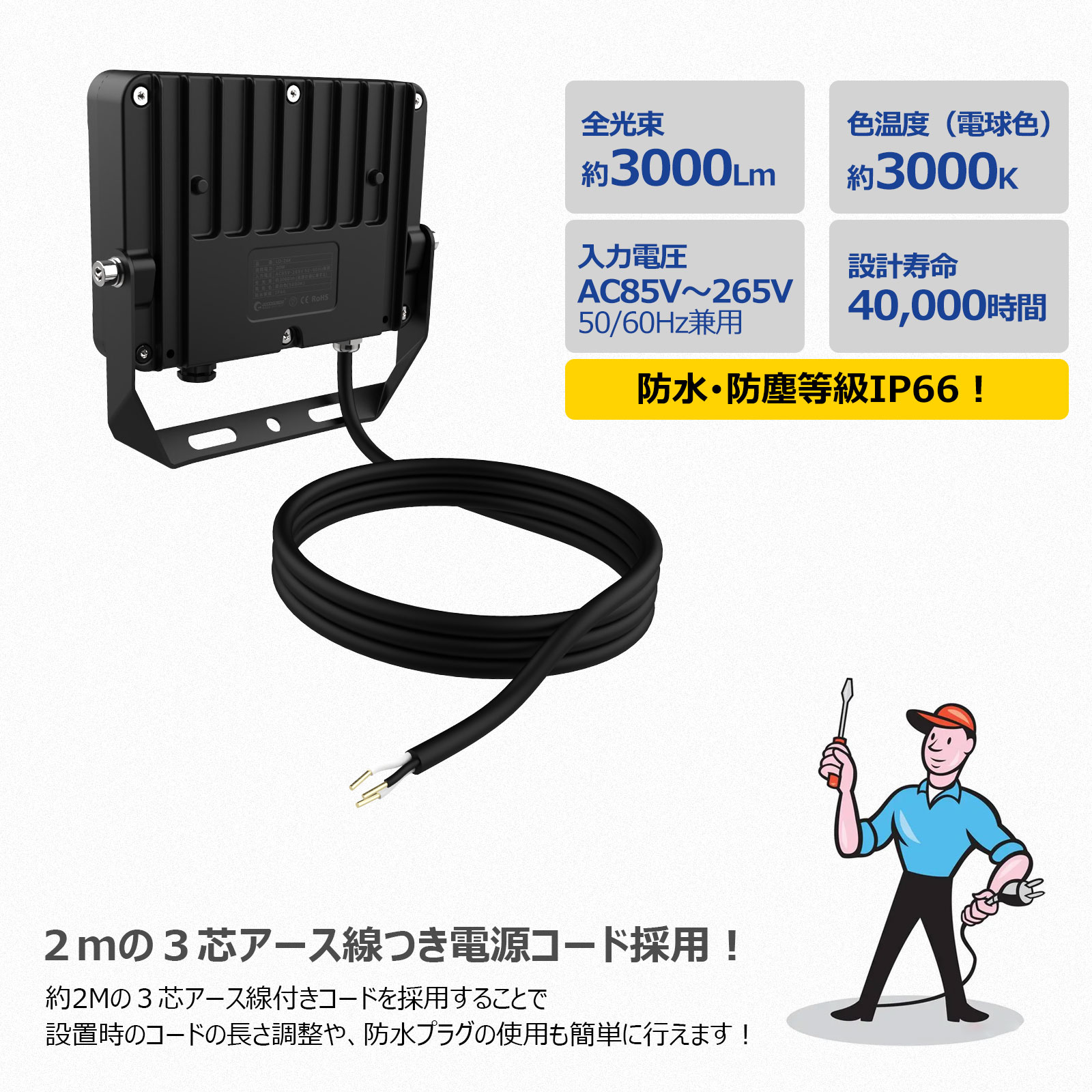 | 全光束(明るさ) | 3000lm | ||