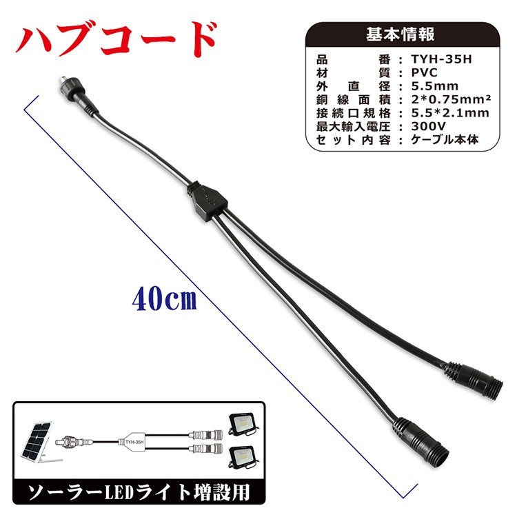 グッドグッズ ソーラーパネルTYH-5JB 分岐ケーブル Y字型 並列用延長コード コネクター ソーラーライトTYH-15WT TYH-30WA TYH-34DW TYH-50WK 増設用