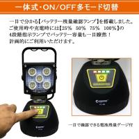 | ★オススメポイント★ 整備工場・板金塗装工場,倉庫作業、自動車整備、ガレージ,電設工事(天井裏工事)、リフォーム建築用照明として大変便利なLED作業灯です。 ●5個素子を採用!驚くほど超明るい!照射角度60度で、スポット効果も抜群です。 ●ワンタッチで点灯4モード切替可能!。 ハイ・ローモード:使う場所や時間帯によって用途に合った使い方ができる。。 SOS・フラッシュモード:イザというときに役に立つ! ●底部マグネットと持ち手で様々なシーンで活躍すること間違いなし! ベースには、強力な磁石付きだから、鉄面にシッカリとくっつき、垂直面や天井面でも落ちません。 ●電池残量ゲージで一目瞭然 ! 一目で分かる【バッテリー残量確認ランプ】を搭載しています。計画的にご利用いただけます。 ●USBポート付き:モバイルバッテリーとして、スマホや携帯などに充電対応できる USB出力: 5V 1A ●長時間点灯が可能な大容量バッテリー搭載。 ●残量やばいを解消!家でも車でも充電可能! DC12V/24Vでシガーソケットから車内でも充電可能です! |