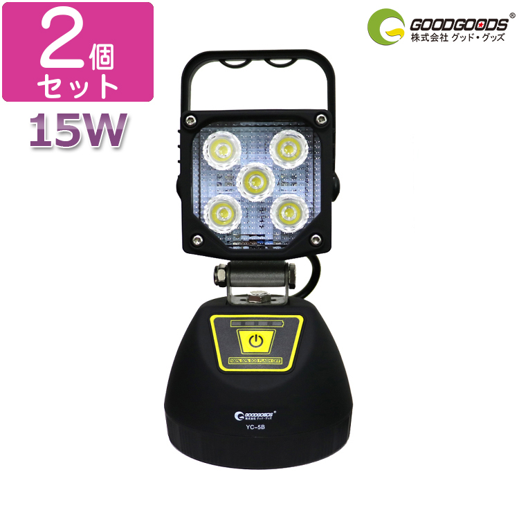 グッドグッズ 2個セット LED投光器 充電式 作業灯 15W 1650LM 明るい 電設 マグネット 4モード 残量ランプ付 携帯に充電 ランタン 夜釣り 夜勤 一年保証 YC-5B