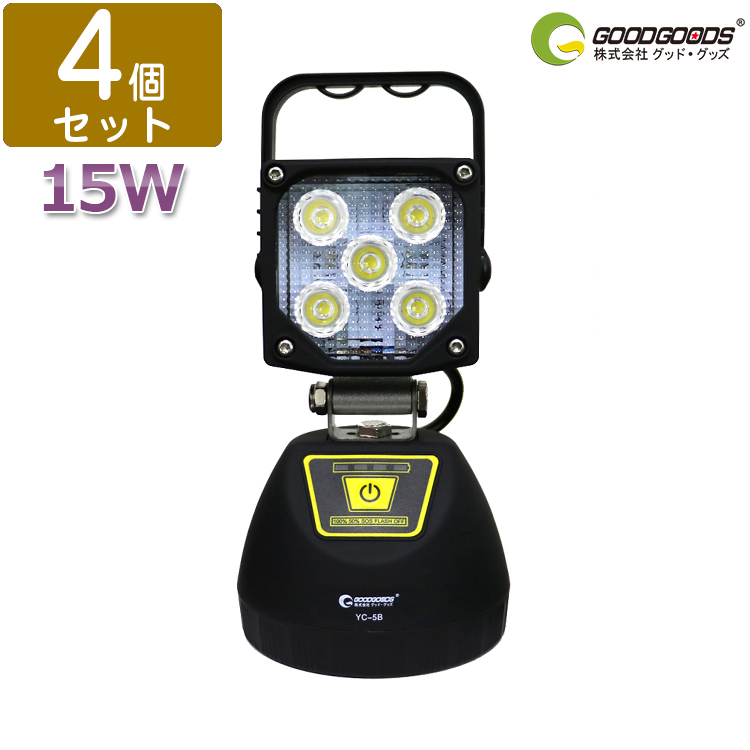 グッドグッズ 4個セット LEDライト 充電式 15W バッテリーライト マグネット 4モード点灯 端末充電 応急 電設 キャンプ 夜釣り アウトドア 防災 一年保証 YC-5B
