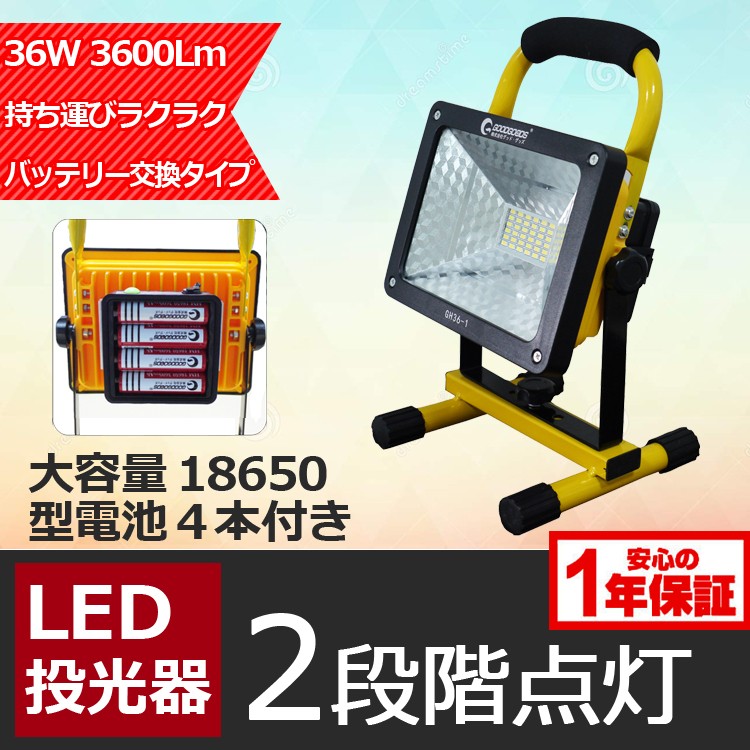 充電式LED投光器 36W 作業灯 コードレス 携帯式 防災 広角 看板灯 ワークライト
