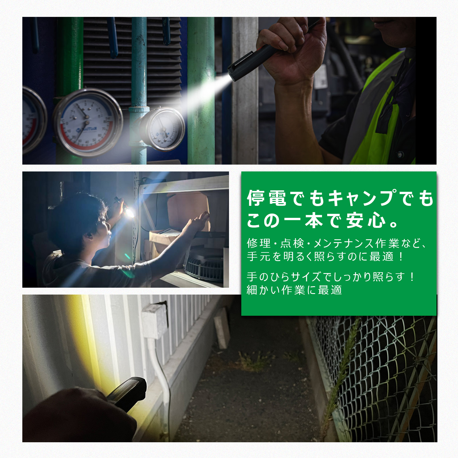 | 全光束 | 側面発光:150lm 懐中電灯:80lm | ||