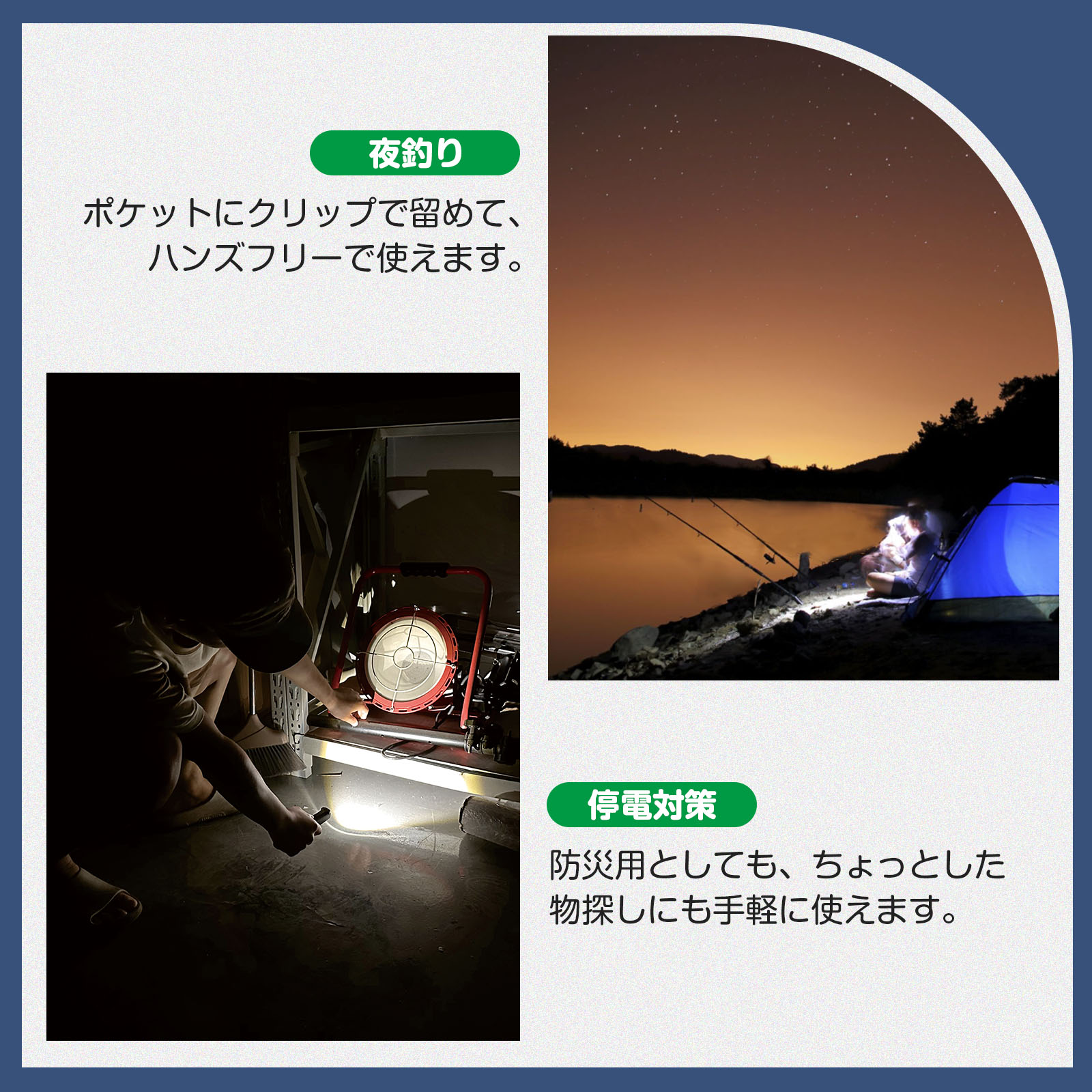 | 点灯時間 | 側面発光:約3時間 懐中電灯:約5時間 | ||