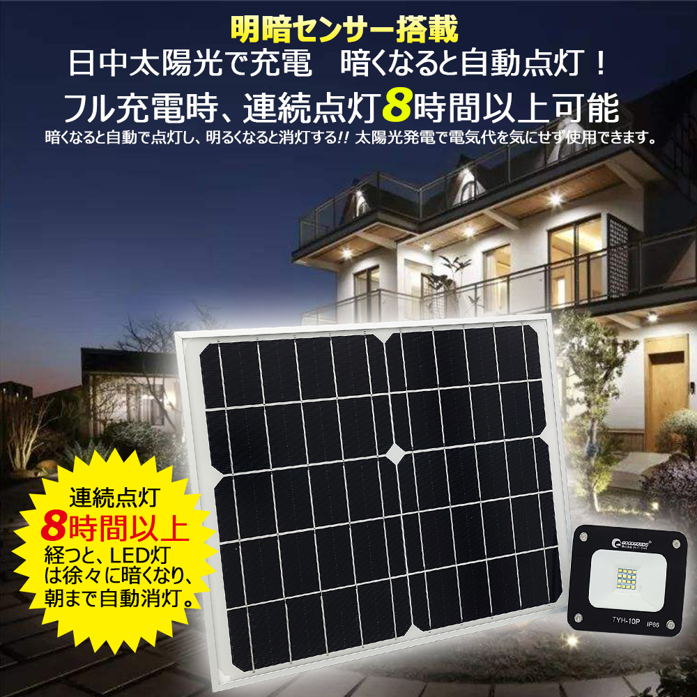 | 本体のサイズ | ライト: W117*H100*D10 mm ソーラーパネル: W350*H290*D47mm | ||