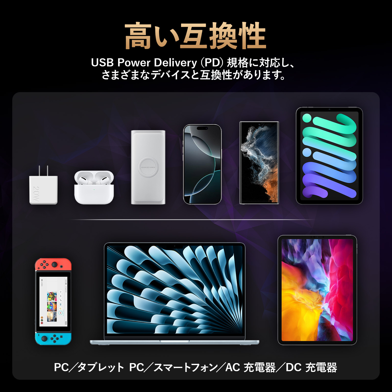 | 出力規格 | 5V-20V 3A(最大PD60W急速充電対応可能) | ||
