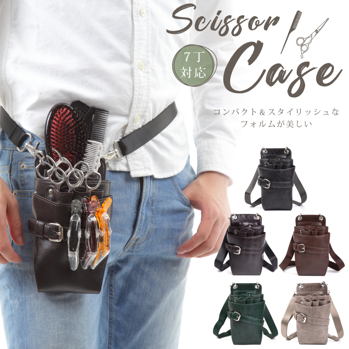 シザーケース 美容師 トリマー おしゃれ シザーバッグ 7丁用 PUレザー サロンワーク
