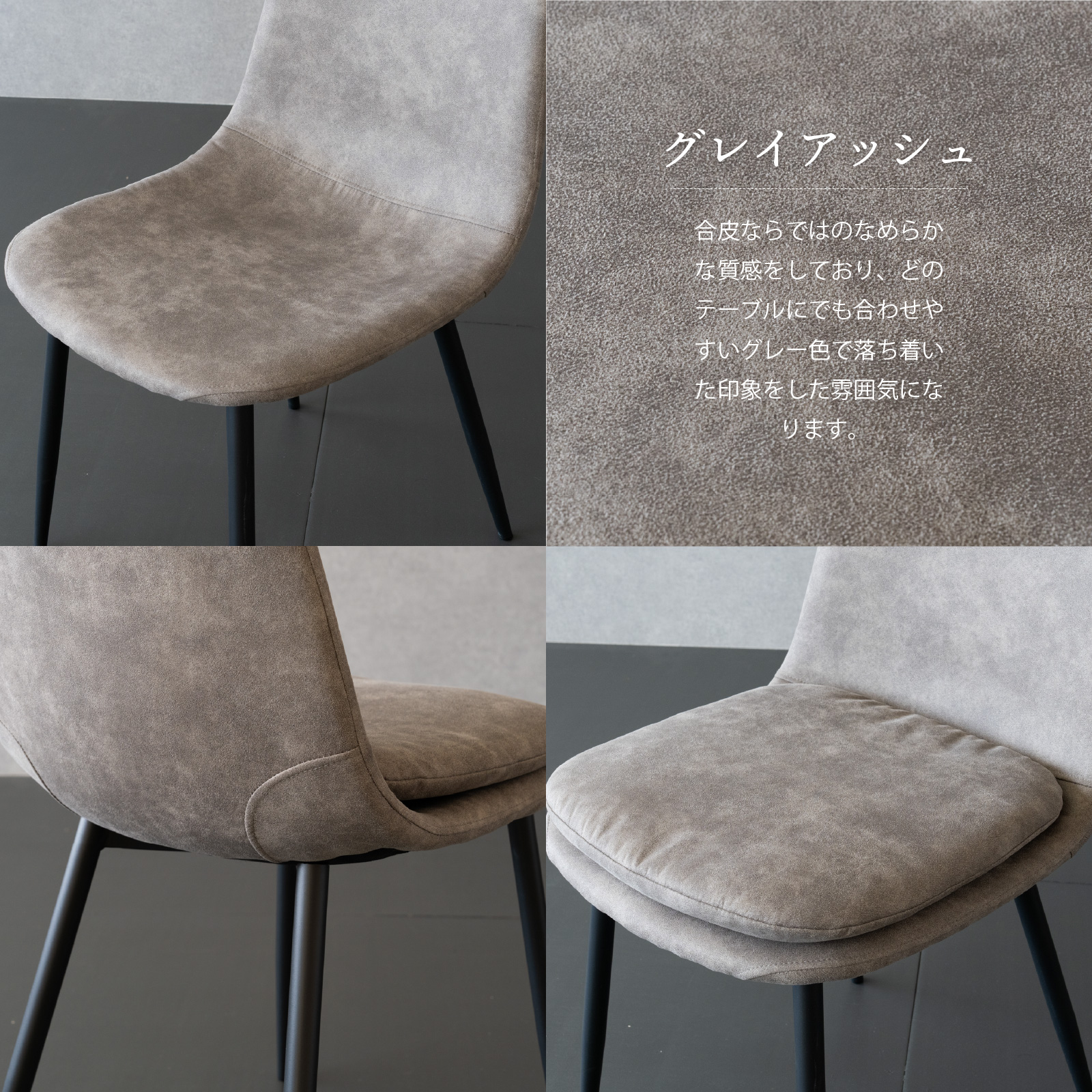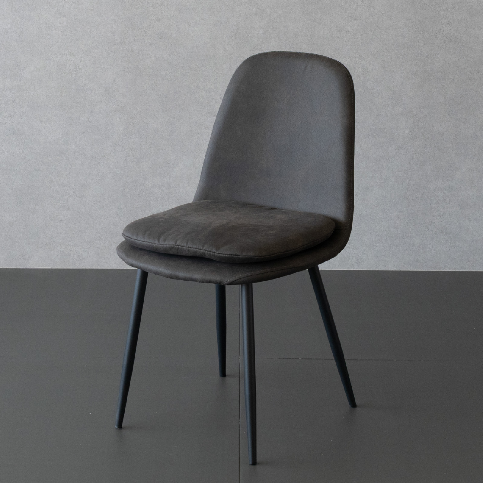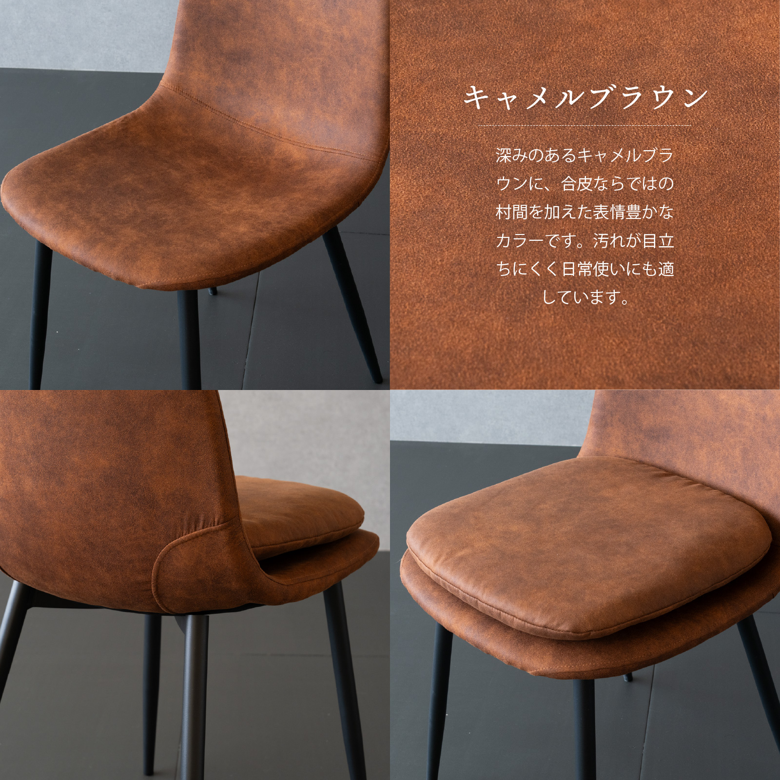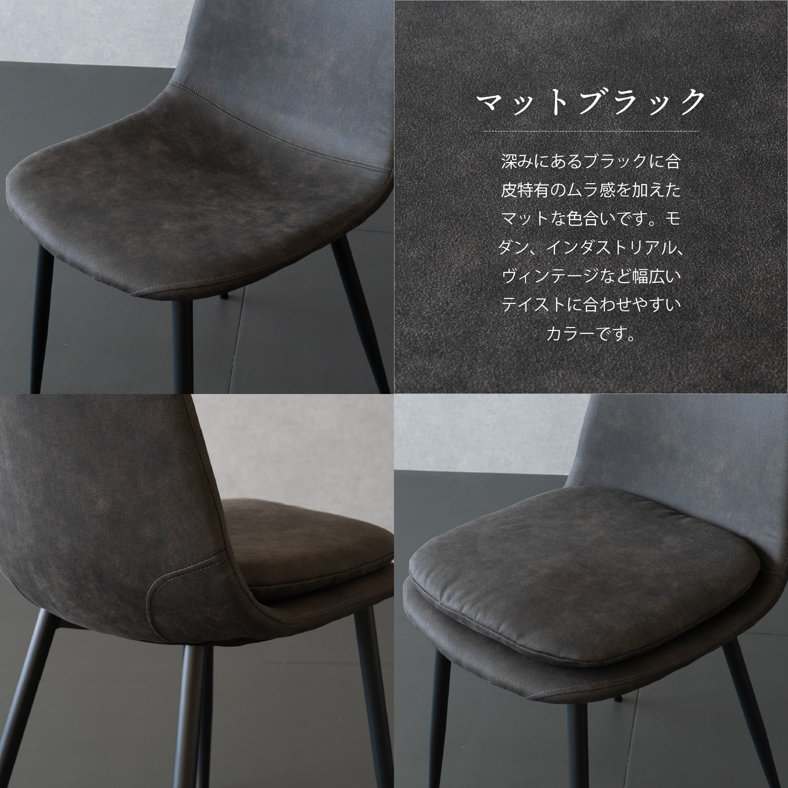 ・ブラック、ブラウン、グレーの3色展開、脚はブラックスチールを使用しシンプルなデザイン。