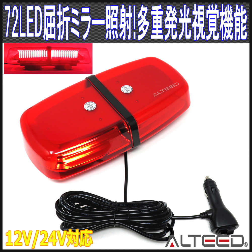 | LEDライトタイプ回転灯です。 側面には拡散ミラーを採用し、上側に内蔵されている72個のLED発光が反射します。 拡散ミラーは角度を付けた段構造になっているので、側面全体が発光しているような視覚効果があります。 全面が発光しているように見えますが、上部72灯のみが発光元となる為に省エネ・軽量仕様となっています。 LEDはSMD5730を採用。発光効率UP高照度化を実現しています。 シガーソケット部のスイッチにより、点灯点滅パターンをチェンジ出来ます(交互点滅、回転、フラッシュ点滅、常時全点灯、等から消灯まで変化します。詳しくは動画をご参照下さい)。 内蔵反射板電動回転モデルとは違いLED発光回転なので、モーター作動音が無く車内への騒音の心配ご不要です。 シガーソケットからの簡単接続で、緊急時、作業時等の警告灯として最適です。 取り付け面には強力マグネット付属です。 |